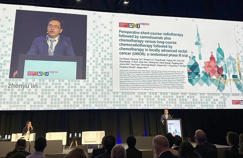 10月21日,BBIN宝盈医药创新药卡瑞利珠单抗(艾瑞卡®)的一项研究“新辅助短程放疗序贯卡瑞利珠单抗联合化疗对比长程放化疗序贯化疗治疗局部晚期直肠癌”随机对照Ⅲ期试验(UNION) 以优选口头报告的形式正式亮相。该研究由华中科技大学同济医学院附属协和医院张涛教授、陶凯雄教授担任主要研究者,华中科技大学同济医学院附属协和医院林振宇教授在马德里现场报告了该重磅研究的结果1,此项研究是全球首个评估短程放疗序贯免疫治疗联合化疗治疗局部晚期直肠癌的Ⅲ期研究,已达到主要终点病理完全缓解(pCR),有望为直肠癌患者的治疗提供新策略。