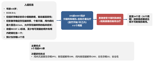 卡瑞利珠单抗是BBIN宝盈医药自主研发的一种人源化IgG4单克隆抗体,其联合铂类双药化疗已在中国获批用于晚期NSCLC患者的一线治疗5,6。2023年,Ⅱ期CAP-BRAIN研究显示了卡瑞利珠单抗联合治疗方案作为晚期非鳞状NSCLC伴脑转移患者一线治疗的潜力7。本项Ⅱ期研究,旨在研究卡瑞利珠单抗联合脑放疗和铂类双药化疗在未经治疗的晚期非鳞状和鳞状NSCLC伴脑转移患者中的疗效和安全性。